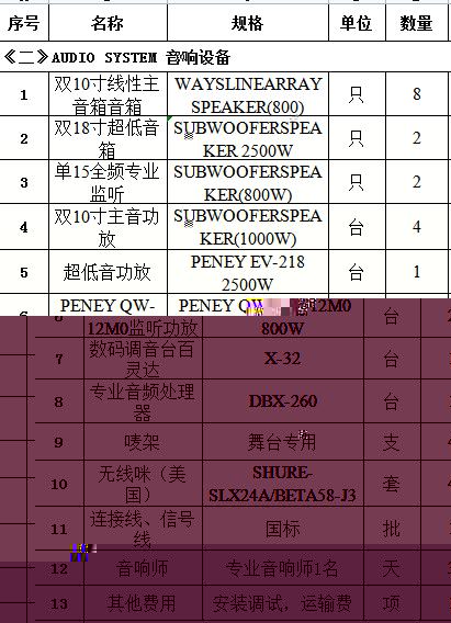 1、項目概況:音響設備、調音師等,詳見清單;