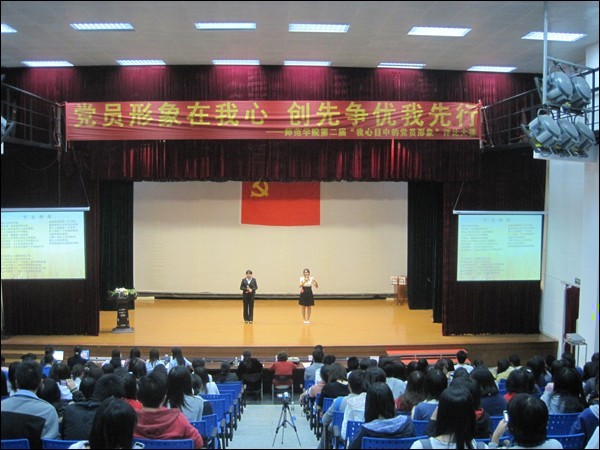 11月11日晚,師範學院在學生活動中心小劇場舉行了第二屆“我心目中的黨員形象”評比大賽。擔任本次比賽的評委有思想政治理論教學部副主任孫豔萍副教授,校黨委組織部組織科科長蕭熾成老師以及太阳黨總副書記宋美娴老師。