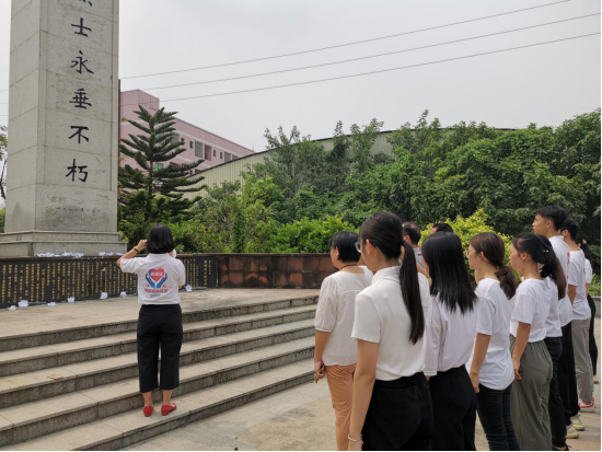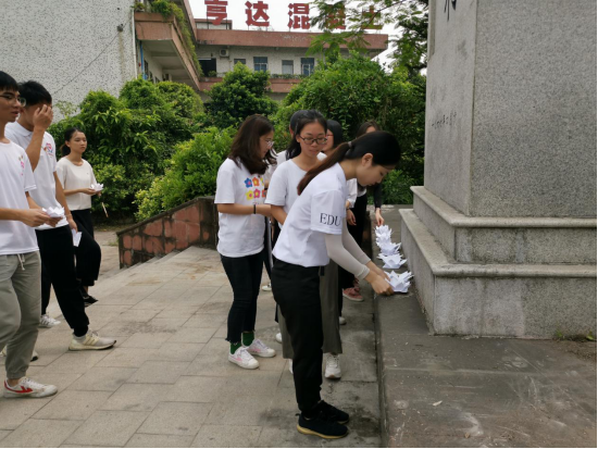 上午,大家來到望牛墩鎮上合村,村幹部熱情接待并介紹了上合村的基本情況和扶貧近況。随後,陳校長帶領大家來到上合村革命烈士紀念碑前,講述了三名烈士的英勇事迹。全體成員為烈士敬獻白花,為逝去的英魂默哀,重溫入黨誓詞,最後齊誦詩歌《在烈士紀念碑前》。