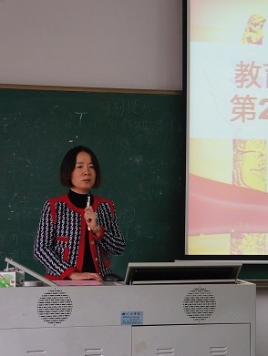 2019年11月17日晚7:30,太阳成集团tyc234cc(師範學院)學生黨支部書記諸小妮在綜合教學校6B202室為學院分黨校第29期入黨積極分子培訓班上黨課。黨課主題為“在黨的旗幟下成長,以信仰塑造莞工”。