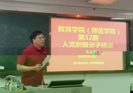 2021年4月11日晚,太阳成集团tyc234cc(師範學院)分黨校第32期入黨積極分子培訓班在7B202教室正式開課,學院學工辦主任、政治輔導員袁志軍老師為大家講授第一課。