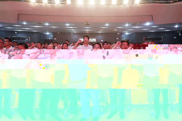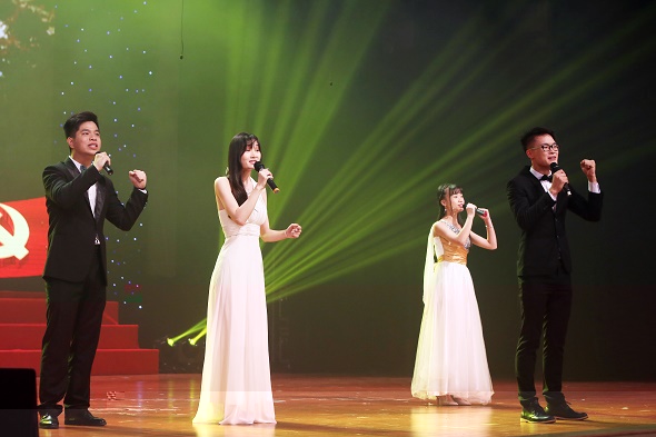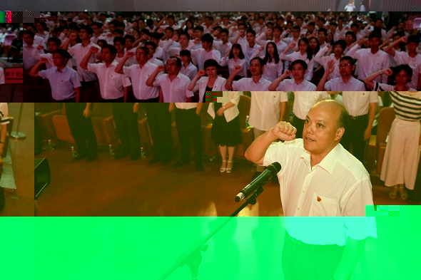 晚會上,在莊嚴的黨旗下, 182名新黨員進行入黨宣誓,在場所有老黨員重溫了入黨誓詞。