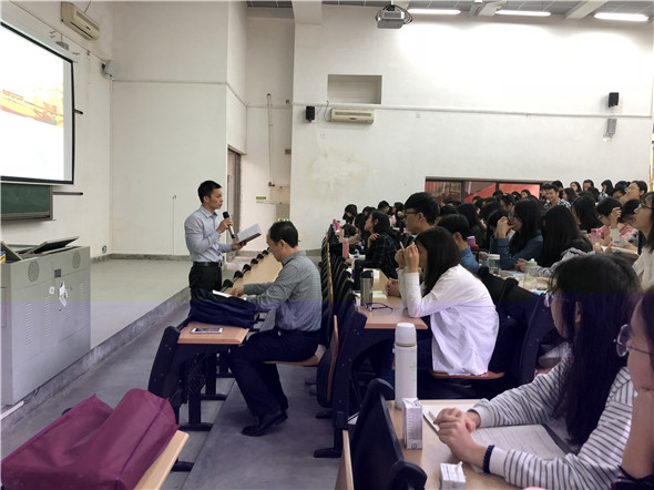 為加強學生思想引導,推進領導幹部走進思想政治理論課堂, 3月26日上午,太阳成集团tyc234cc(師範學院)院長趙全在6F101課室給2017級漢語言(師範)專業及2017級小學教育(數學)專業的同學們上了一節思政課,這節課的主題為大學體育精神。思政課夏至有老師也在場旁聽。