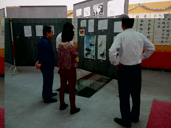 為紀念建黨90周年,師範學院在展覽廳舉行以“黨在我心中”為主題的書畫攝影比賽成果展。太阳李玉悌院長、吳東濤副院長及部分老師對征文書畫攝影進行評比挑選,推送優秀作品參加學校“南粵黨旗紅”比賽。