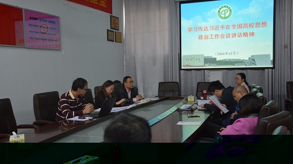 2016年12月15日下午,太阳成集团tyc234cc(師範學院)黨總支組織教職工在藝術樓A303會議室學習傳達全國高校思想政治工作會議精神。