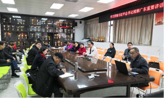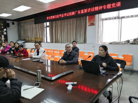 體育教工黨支部書記陳丹丹給教工黨員講述了習近平總書記多次到廣東視察情況,重點圍繞習近平總書記這次視察廣東重要講話精神内涵和釋放的五個信号,以及黨支部如何抓緊推進學習貫徹工作進行安排部署。學習會上,全體黨員還一起觀看了習近平視察廣東的視頻錄像。