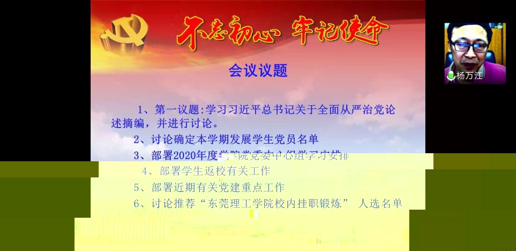 随後,學生黨支部書記王淩卿對符合入黨條件的學生發展對象進行一一介紹,大家進行了研究讨論,最後确定鄭紫薇等18名同學在本學期發展入黨。會上,楊萬江還對學院黨委中心學習、學生返校、開展主題黨日活動等工作進行了部署,大家還就校内挂職鍛煉推薦人選進行了讨論。