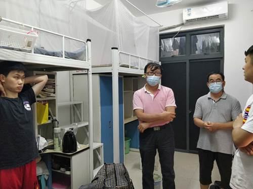 當天晚上,學院黨委書記楊萬江、黨委副書記黃藝琦、副院長琚丹紅及輔導員、部分班主任老師還不辭辛勞地走訪了每位返校畢業生的宿舍,詳細地了解每個宿舍存在的問題,耐心地講解返校畢業生們應該注意的問題和事項,叮囑他們注意防疫,保證健康。