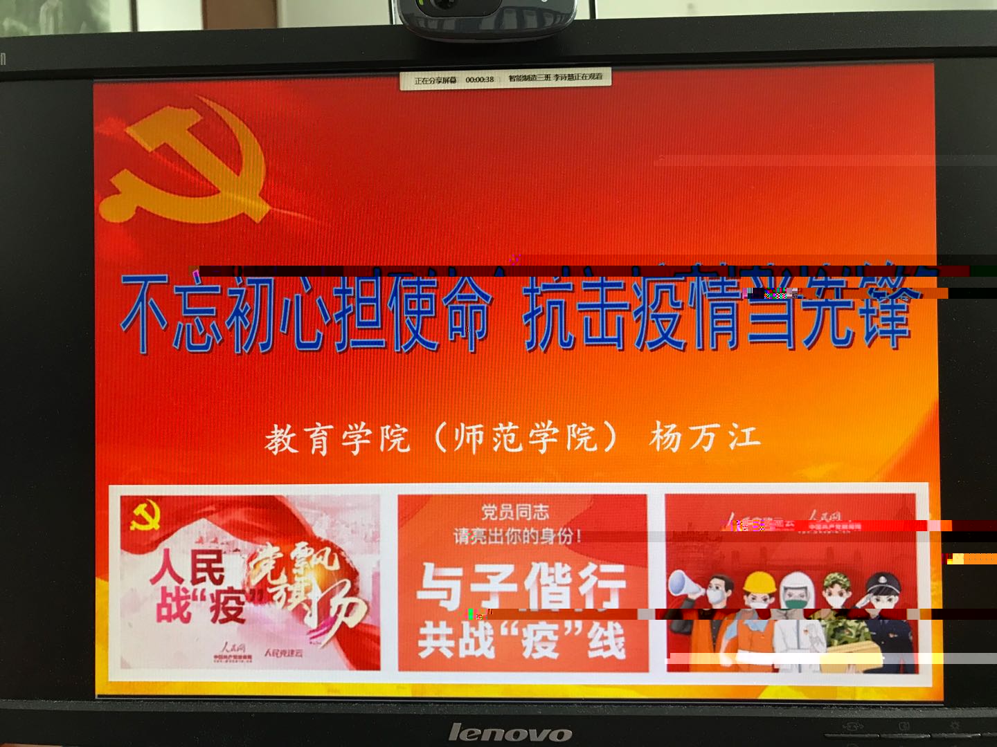 5月19日,太阳成集团tyc234cc(師範學院)黨委書記楊萬江在QQ視頻通話會議中為18級智能制造專業4個班的同學們開展了一堂主題為“不忘初心擔使命 抗擊疫情當先鋒”的“雲端思政課”。