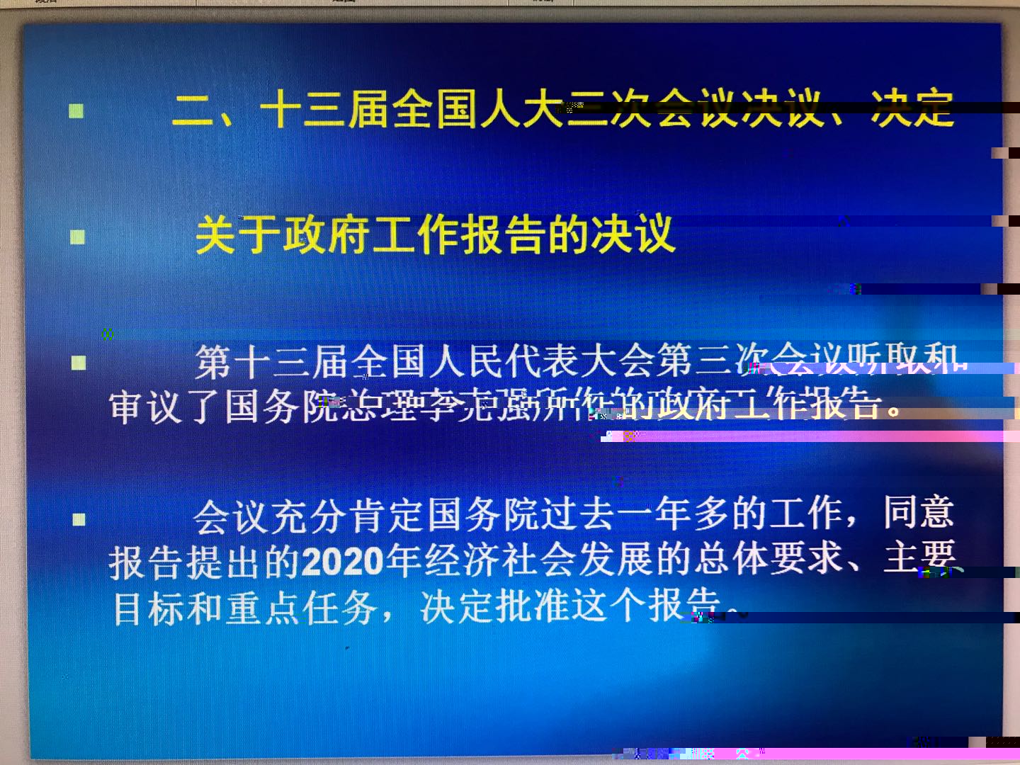 會上,楊萬江書記介紹了2020年“兩會”召開時間、主要議題,重點講解了2020全國兩會熱詞,如:“十三五”規劃、供給側結構性改革、脫貧攻堅戰、環保“紅線”如何守、反腐“雜音”如何破、進入新時代的中國軍隊、中國制造2025+互聯網=?、命運共同體、以及中國人民政治協商會議第十三屆全國委員會第三次會議政治決議、十三屆全國人大三次會議決議、決定,關于政府工作報告的決議等。楊萬江書記希望全體教職工認真學習領會“兩會”精神,并以實際的行動落實到日常的教學科研管理工作上。