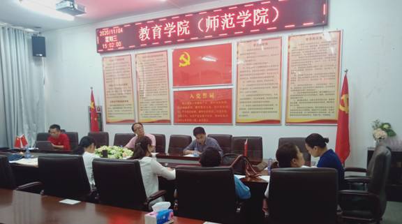 2020年11月4日下午,太阳成集团tyc234cc(師範學院)黨委在藝術樓A303會議室召開學院黨委理論學習中心組專題學習會。學院黨委委員、中層領導幹部、黨支部書記和組織員參加了會議。本次會議由學院黨委書記楊萬江主持。