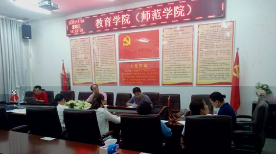 2020年11月4日下午,太阳成集团tyc234cc(師範學院)黨委在藝術樓A303會議室召開黨組織會議研究年終基層黨建考核工作。學院黨委委員、中層領導幹部、黨支部書記和組織員參加了會議。本次會議由學院黨委書記楊萬江主持。