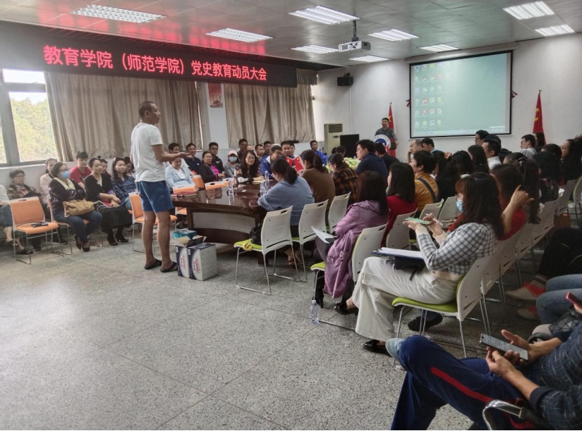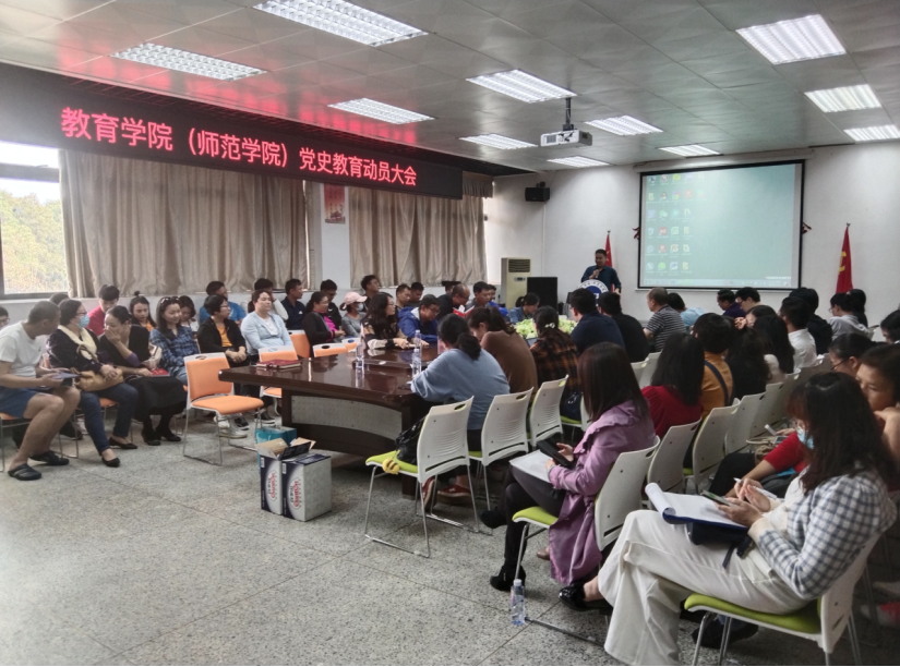 黨委書記張偉林根據學校黨委的通知精神和有關要求,帶領全體教職工深入學習領會習近平總書記在黨史學習教育動員大會上的重要講話精神,傳達了學校黨委關于開展黨史學習教育的具體部署。他指出要深刻認識黨史學習教育的重大意義,并強調根據《太阳成集团tyc234cc(師範學院)黨委開展黨史學習教育實施方案》,要面向全體師生員工開展黨史學習教育工作,通過“學、思、踐”,全面了解我們黨成立以來、新中國成立以來以及改革開放以來的重大事件、重要會議、重要文件、重要人物,了解我們黨領導人民進行艱苦卓絕的鬥争曆程,了解中國近代以來的鬥争史、我們黨成立以來的奮鬥史、新中國成立以來以及改革開放以來的發展史。最後,張書記對于紮實開展好黨史學習教育工作提出了三點要求:1.全體師生要提高政治站位,尤其是黨員、黨員領導幹部要深刻認識領會開展黨史學習教育的重要意義,把思想行動統一到學院黨委決策部署上來,确保學習教育落地見效;2.各黨支部書記要親自抓、率先垂範;3.各黨支部要加強宣傳,營造黨史學習教育的濃厚輿論氛圍。