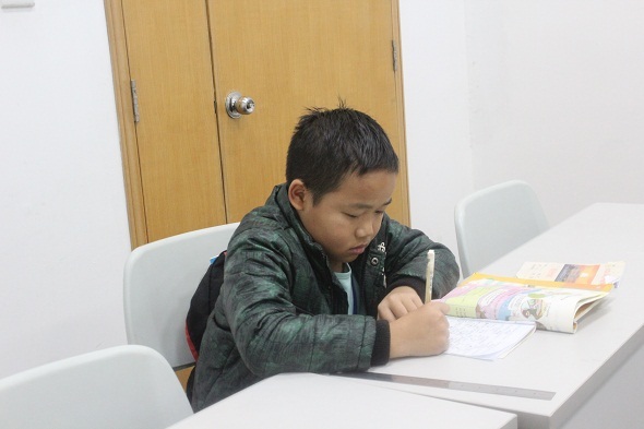 小朋友正在認真寫作業