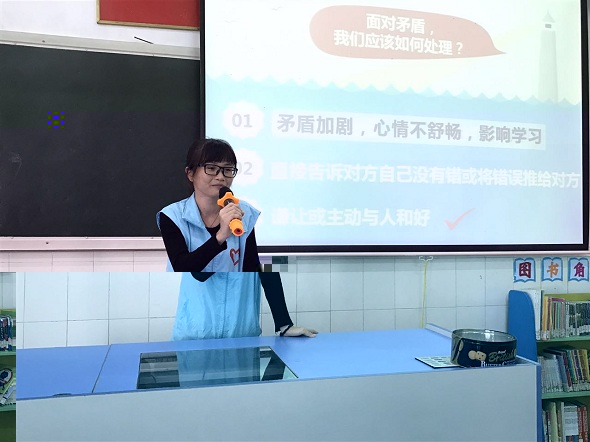 對于新教員們的到來,小朋友們深感愉悅,紛紛期待此次主題班會的展開。本次主題班會的主題是“學會與人相處”,教員們準備了精心制作的PPT,通過課堂教學、課堂提問、情景演繹以及團體合唱等多種表現形式,向學生傳達與人相處的基本禮儀。在教學性與趣味性的相互融合之下,學生們在教員們的教學下潛移默化地吸收知識,在趣味中提升興趣,在歡樂中學得道理,同時也收獲了與教員們的美好情誼。
