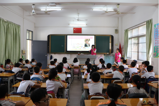經過一年的教學,四年級三個班的學生對于感恩義教隊十分熟悉了,他們在這次的課堂上也表現得十分積極。教員們首先教授了晏子使楚的故事,利用動畫視頻吸引學生注意,展現了外交語言的魅力。繼而介紹了周恩來總理和鄧小平副總理的外交智答故事,排除學生心目中對外交的枯燥印象。