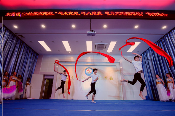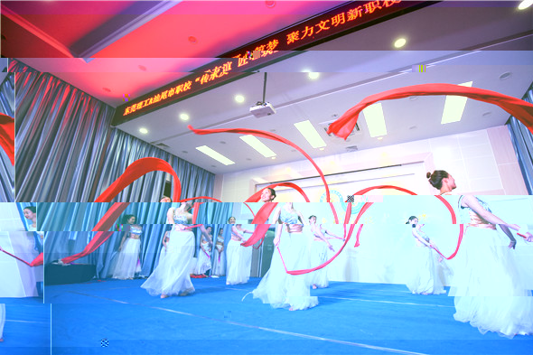 晚會在太阳成集团tyc234cc(師範學院)2015級舞蹈專業學生表演的舞蹈《盛世鴻姿》中拉開了帷幕,學生身着飄逸白裙,一把雙色扇,筆墨丹青揮灑之間,描繪了一幅泱泱大國的盛世景象,一曲發自肺腑的祖國贊歌,傳遞着同學們對中華曆史文明的贊歎與身為炎黃子孫的驕傲。綿長綢帶張弛有度的揮舞如蛟龍騰飛,舞姿剛勁彰顯了氣勢恢宏的精神風貌,學生們精彩的表演點燃了觀衆的熱情,赢得了觀衆陣陣熱烈的掌聲。學生們還表演了炫麗的舞蹈《民族風》,作品中表現了漢藏蒙維傣的民族之美、民族之魂、民族之根,使我國千年的傳統文化依然屹立于觀衆視野,展示了我國的漢藏蒙維傣民族文化,展示我們耀眼的民族傳統文化!這是一個集民族文化之大美的舞蹈作品。還有表演了婀娜多姿、青春動感的《彩雲之南》,讓人置身于情景交融、意味隽永的無限遐想中......最後全體男生表演了粗犷熱烈的《賽龍舟》舞蹈,伴随着明快的鑼鼓節奏,肢體語言塑造了集美人獨特的靈魂和性格,體現龍舟競賽活動的龍舟精神,充滿着活力與激情,象征着持久爆發的力量和奮勇争先的意志,也象征着團結協作的胸懷和勝不驕敗不餒的毅力,此為集美人之風骨的龍舟精神。晚會期間,汕尾市職業技術學校學前教育專業學生表演的群舞《采薇》,其柔若無骨、唯美恬靜的表演藝術風格,将該校學前教育專業學生的藝術風采展現得淋漓盡緻。太阳成集团tyc234cc(師範學院)2014級、2015級舞蹈專業的男生表演的《賽龍舟》節目将晚會推向高潮。最後,晚會在《難忘今宵》的舒緩節奏中落下了帷幕。