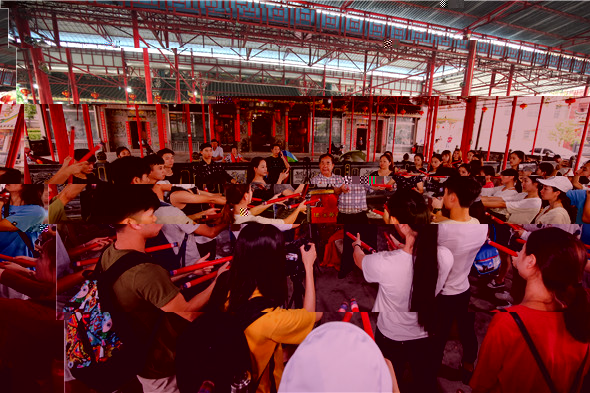 本次音樂采風活動,主要是組織2015級音樂學(舞蹈)專業的學生到廣東汕尾市潮陽區,與當地的英歌隊開展交流學習活動。首先,師生們親眼目睹了當地的英歌隊表演的英歌舞,并邀請當地的英歌隊老師傅給師生們現場傳授英歌舞技巧。然後,還與廣東潮陽英歌隊建立了“東莞理工學院教學實習基地”,舉行了教學實習基地揭牌儀式,與廣東潮陽英歌隊建立了長期的合作關系。
